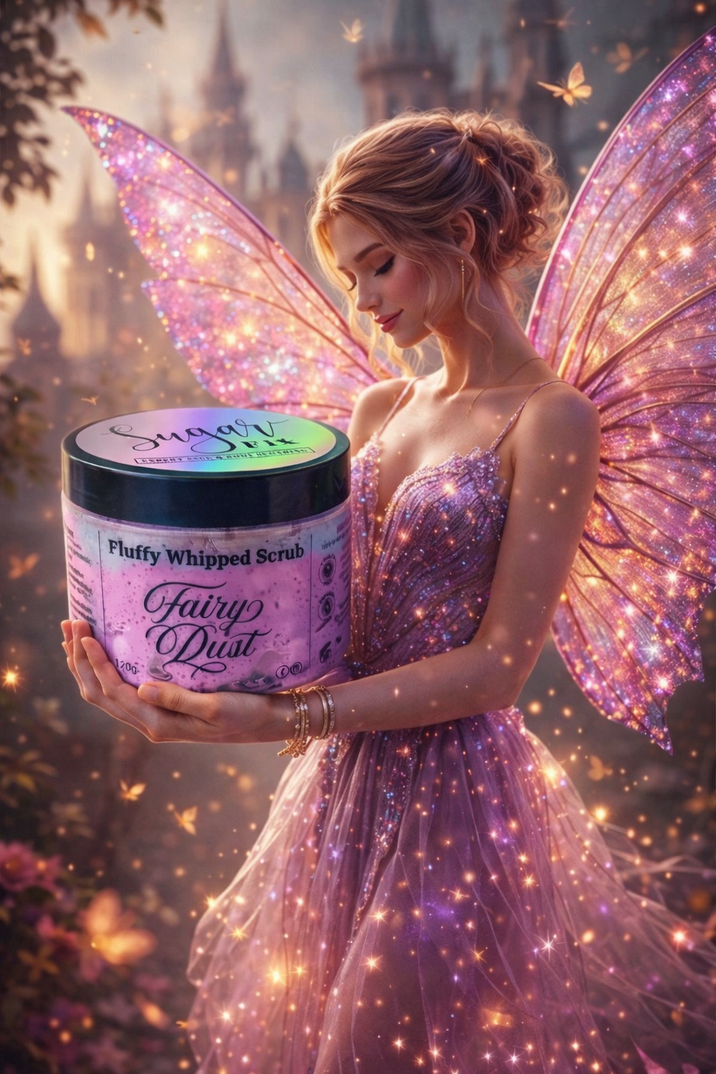 Whipped into a light, fluffy cloud, it gently exfoliates while leaving your skin silky smooth and wrapped in a shimmering, joyful scent that’s pure enchantment. Perfect for anyone who loves a touch of sparkle and sweetness in their self-care routine.